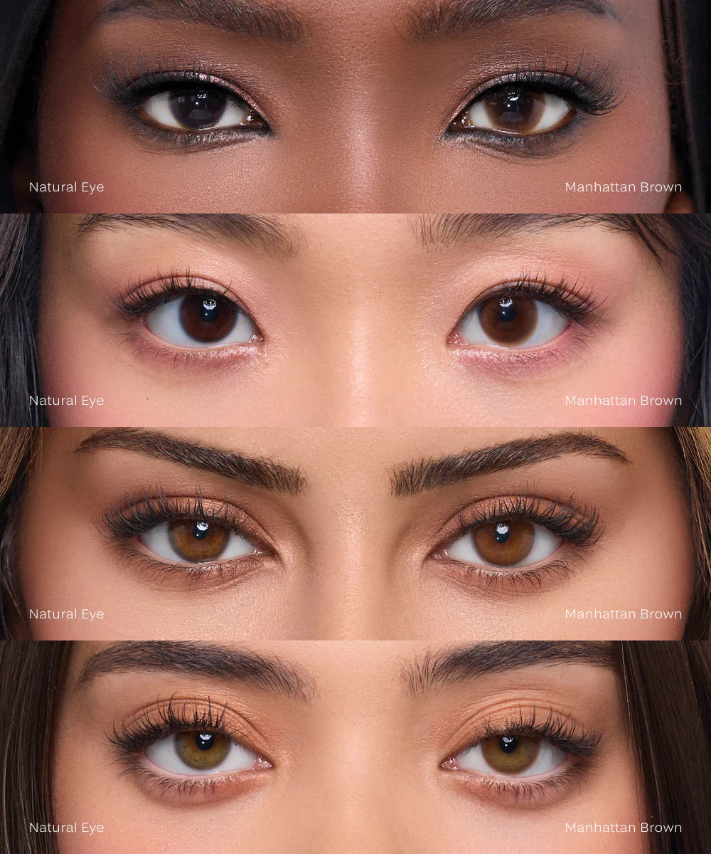 Our Manhattan Brown color contact lenses are designed to give darker eyes a light-to-medium brown tone with hints of caramel and toffee. These lenses are subtle and versatile, making them a great choice for just about any social or work situation. The Manhattan Brown tone is warm and inviting and will enhance without being over-the-top. The subtlety of the design does not suit a light eye trying to go darker.