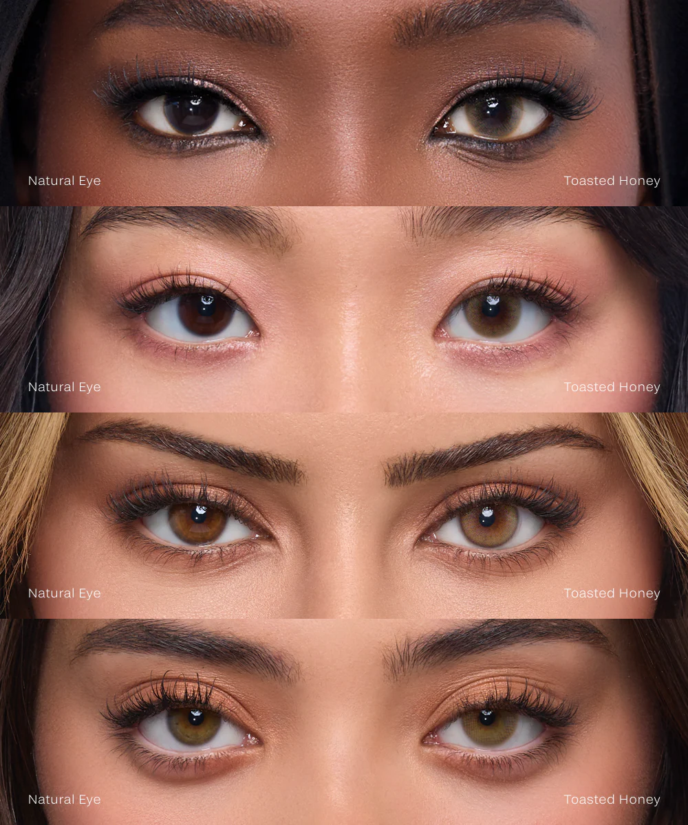 With warm honeycomb highlights, our one-tone Toasted Honey lenses make every gaze sweet. The toasted honey tone is versatile and flattering, making it a great choice for just about any eye colour, giving them a warm, golden glow.
